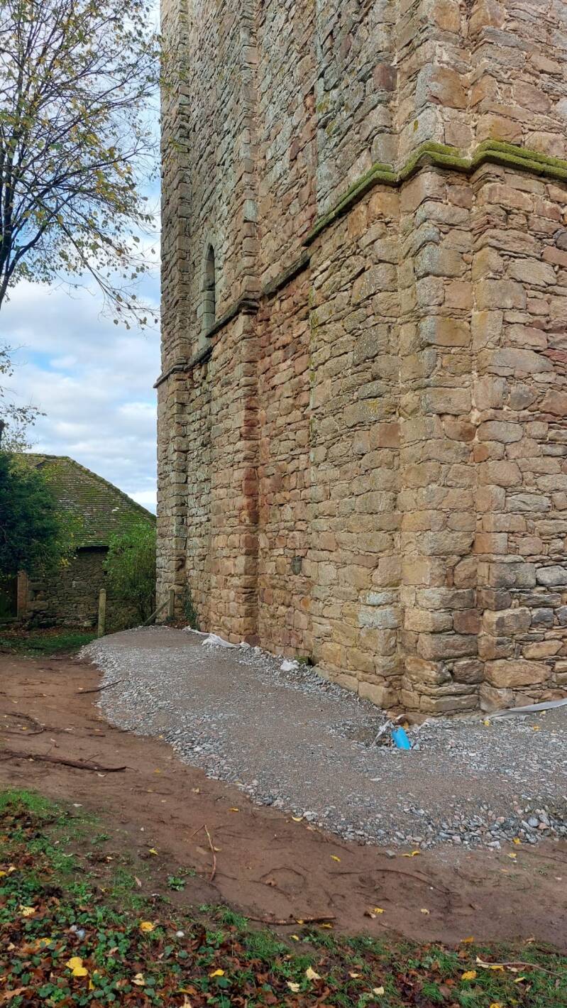 Les travaux préparatoires se poursuivent avec l'ouverture du muret et la création d'un chemin d'accès à la Tour pour tous les intervenants du chantier.